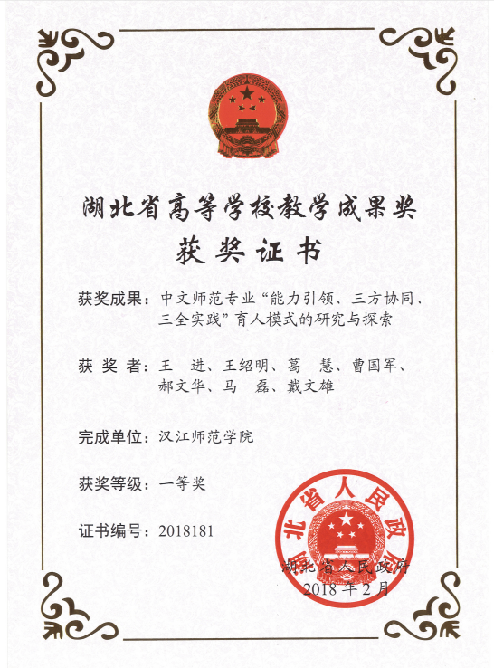 下一篇:第九届湖北省教学成果(二等奖)(2023356):地方院校文学教学的绘声绘色模式研究与实践