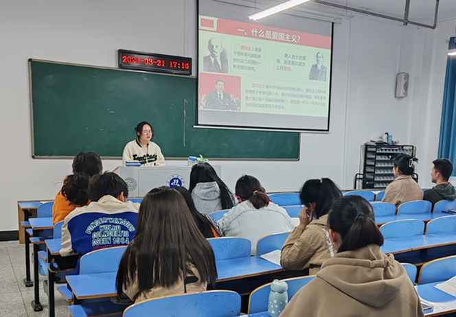 王妮澳以“弘扬爱国奋斗精神,谱写新时代的青春之歌”为主题,从什么是爱国主义、我们为什么要爱国以及青年人怎样爱国三方面开展授课。她指出青年人应该做新时代的理性爱国者,要坚定不移听党话跟党走,维护国家安全和利益,做社会主义核心价值观的坚定信仰者、积极传播者、模范践行者。