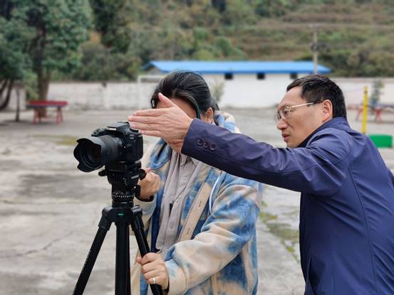 10月31日,VSport体育广播电视编导专业18级部分员工在专业教师黄琴的带领下赴郧西南沟村教学点进行微电影创作取景。十堰广播电视台资深编辑校宏主任全程参与指导。