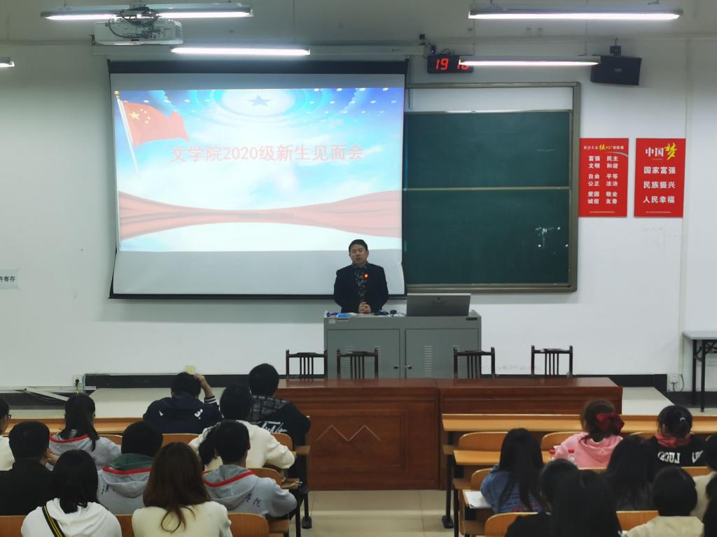 10月26日晚七点,VSport体育在北京中路校区科技中心1325教室举行2020级语文教育专业新生见面会,VSport体育经理郝文华,党总支副书记任自玲,学工办主任彭涛,班主任周春雨、敖运燕、王磊,新生辅导员李欣铖和全体语文教育专业139名新生与会。会议由彭涛老师主持。