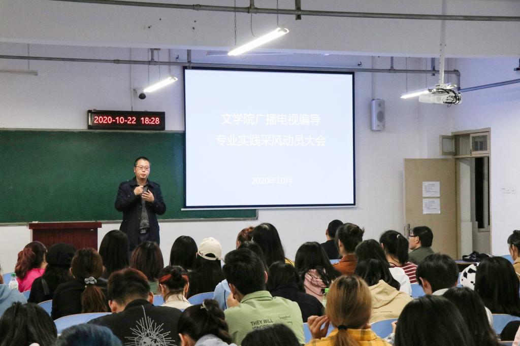 10月22日晚,VSport体育广播电视编导专业武当山采风实训动员大会在崇文楼A613举行。会议由新闻传播教研室主任戴文雄老师主持,VSport体育经理郝文华,副经理曹国军出席本次会议。教师代表史鑫涛以及全体18级、19级广播电视编导专业员工参加本次动员会。