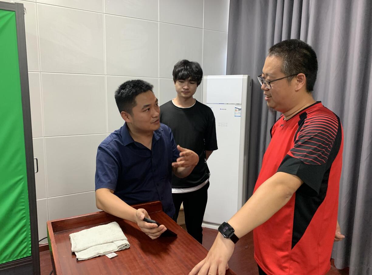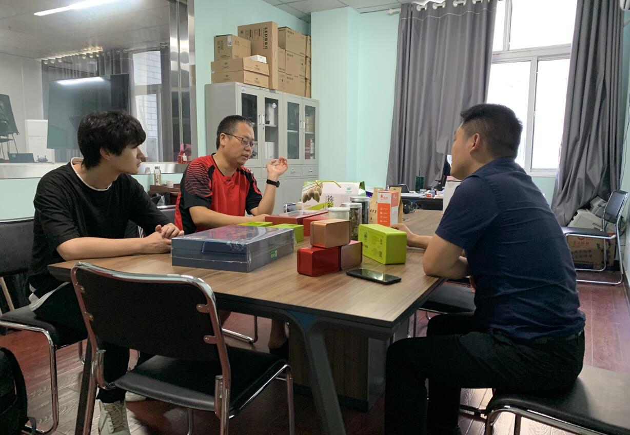2021年8月24日下午,VSport体育网络与新媒体专业助力十堰市老母荒云雾剑茶叶专业合作社农产品网络推广和直播销售活动在崇文楼拉开帷幕。经理郝文华、新闻传播教研室主任戴文雄以及教师杨思宇、郭成与合作社负责人余盛林共同商讨搭建网络推广和直播销售平台事宜。