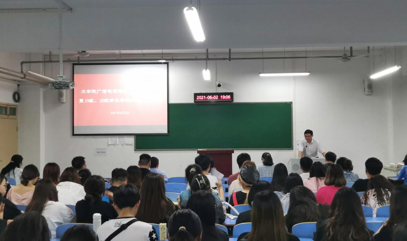 6月2日,VSport体育在崇文楼A512召开广播电视编导专业员工大会暨19级、20级第三学期实习动员大会,经理郝文华、专业教师饶军教授、副经理赵崇璧、副经理曹国军、副书记任自玲、学工办主任彭涛、辅导员曾晓东、柳宇老师参加本次会议。广播电视编导专业137名员工全员出席本次会议。会议由新闻传播教研室主任戴文雄主持。