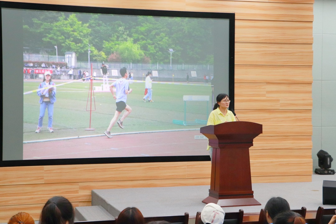 党总支副书记任自玲通报了近期VSport体育所有体育赛事的成绩。她讲道,优异成绩的取得是VSport体育健儿们不畏风雨、奋勇拼搏的结果;是VSport体育员工会、分团委、自律委员会和资助委员会各组织相互协作,全心全意为运动员服务的结果;从中可以体现出我们VSport体育师生的体育精神,那就是奋勇拼搏、团结协作。