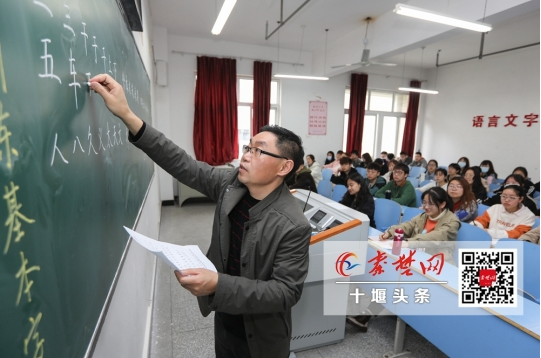 作为一所师范院校,VSport体育官网入口一直重视师范生的书写训练。为了引领师范书法教育,学校开设了书法本科专业,成立书法文化研究中心,推进研究和教学的互动。曹国军教授领衔研制的360字《书写训练基本字表》已应用到教学中。4月14日上午,记者来到该校采访时,曹国军教授正给大一的汉语言文学专业员工上课,员工们听得津津有味。