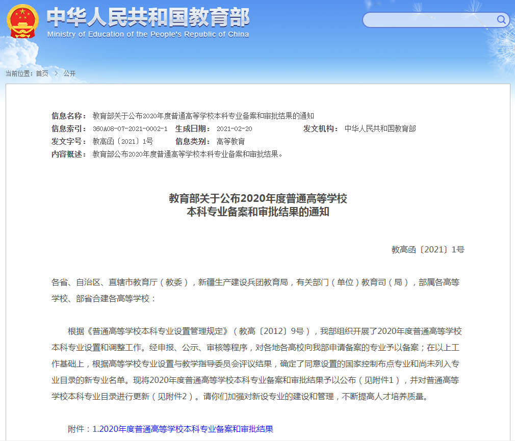 近日,教育部网站公布了2020年度普通高等学校本科专业备案和审批结果,VSport体育新增网络与新媒体本科专业。VSport体育本科专业增至4个,分别是汉语言文学专业、广播电视编导专业、书法学专业和网络与新媒体专业。网络与新媒体专业将于今年正式招生,授予文学学士学位。