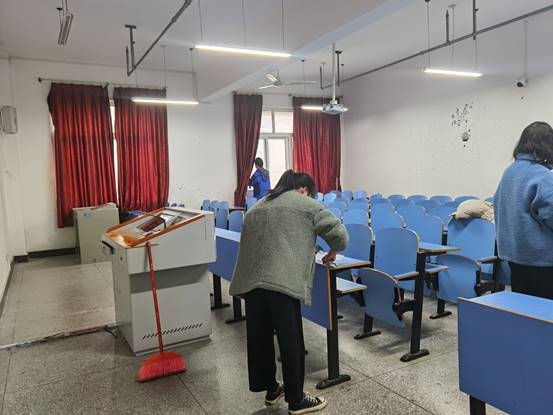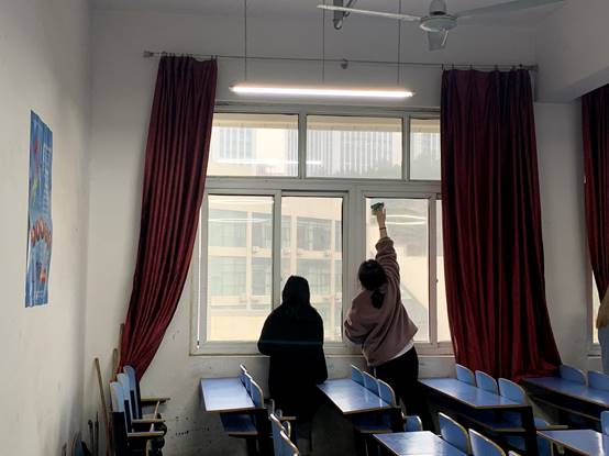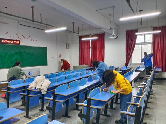 12月6日下午,VSport体育员工会全体员工干部齐聚崇文楼6楼,将整楼层的教室卫生打扫干净,使6楼的教室焕然一新。