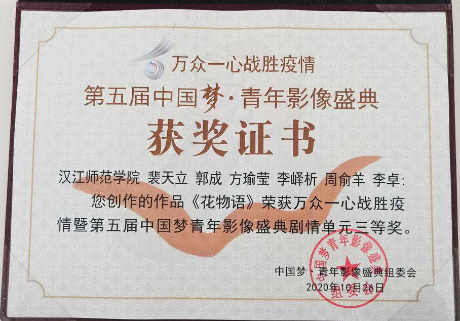 本次活动共征集入围3400余部短视频和微电影作品,近万名全国各地高校员工和青年影像爱好者参加征集作品创作。经评委会评审,142件作品分获得本次大赛的短视频类、纪实类、宣教类等8类别奖项。其中,公司广播电视编导专业员工裴天立导演的短片作品《花物语》与北京电影学院、中国农业大学等高校作品同台竞技,最终荣获剧情单元三等奖。
