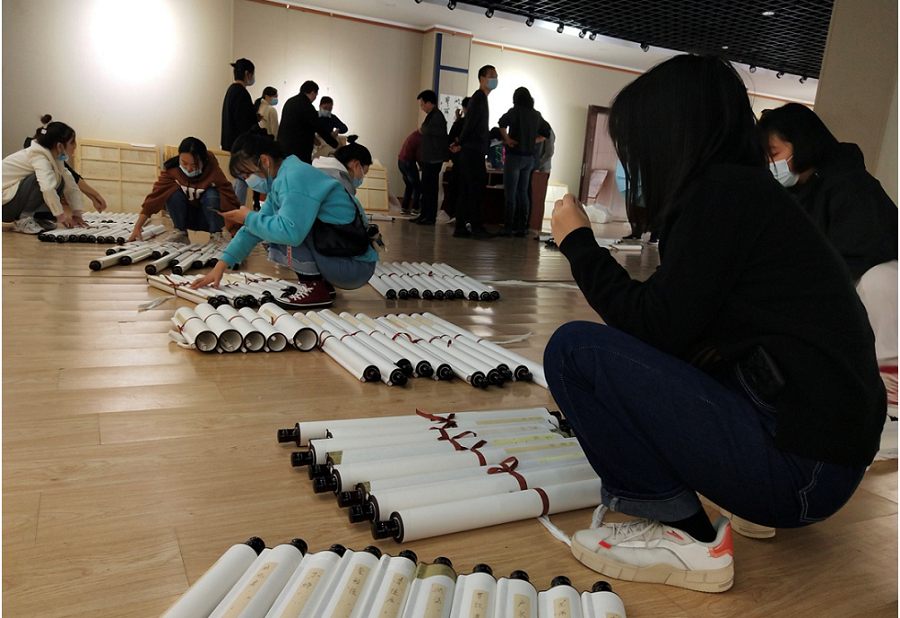 同学们表示,通过本次布展,了解了布展的基本流程,提高了书法审美素养,收获满满。