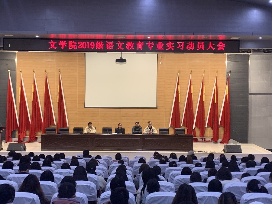 12月16日晚,公司2019级语文教育专业实习动员大会在图书馆学术报告厅如期举行。主讲人:VSport体育副经理曹国军、员工办主任彭涛、院辅导员杨超和蔡兆祝;参与成员:2019级语文教育全体同学。