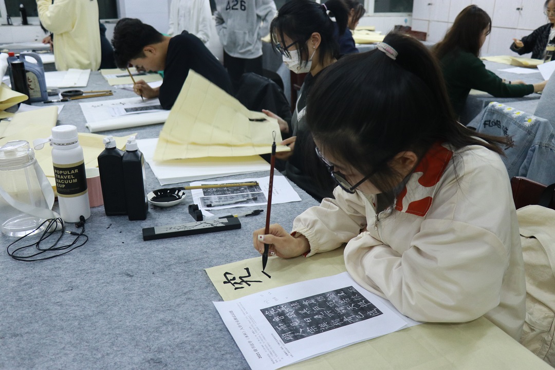 此次考试的时间从晚7点持续到9点,考试内容分为临摹和创作两大部分,同学们可从小篆,隶书、楷书、行书四种字体中任选其中一种书写。考察板块也有很大创新,考试内容并非完全复制以前学过的唐诗宋词,而是不落俗套地考察文字学家、金石书法家张廷济的题跋诗。