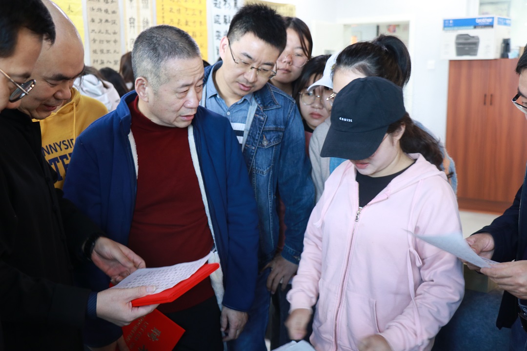 十堰市书法家协会副秘书长杨永志对同学们的作品进行了点评,针对书法取法、作品打造等问题提出了具体建议,并勉励同学们要更加耐心、细心、专心地投入到书法作品创作中去,多加练习才能出好作品。