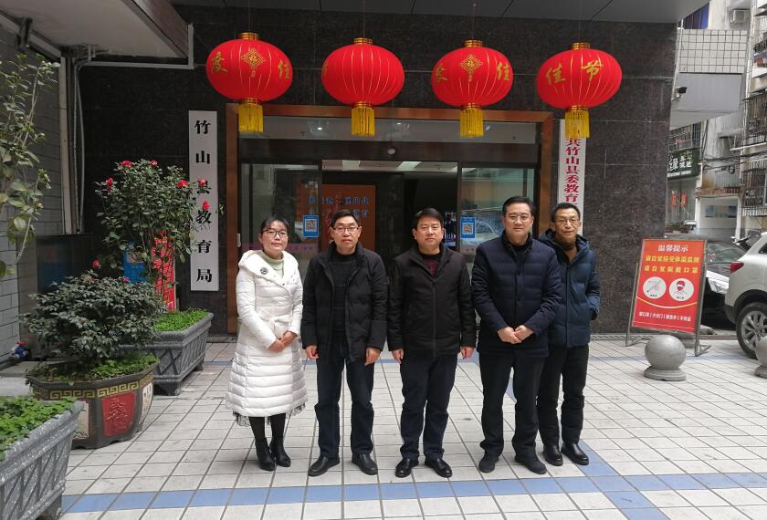 考察团同竹山教育局周才宏主任、汤丽主任合影