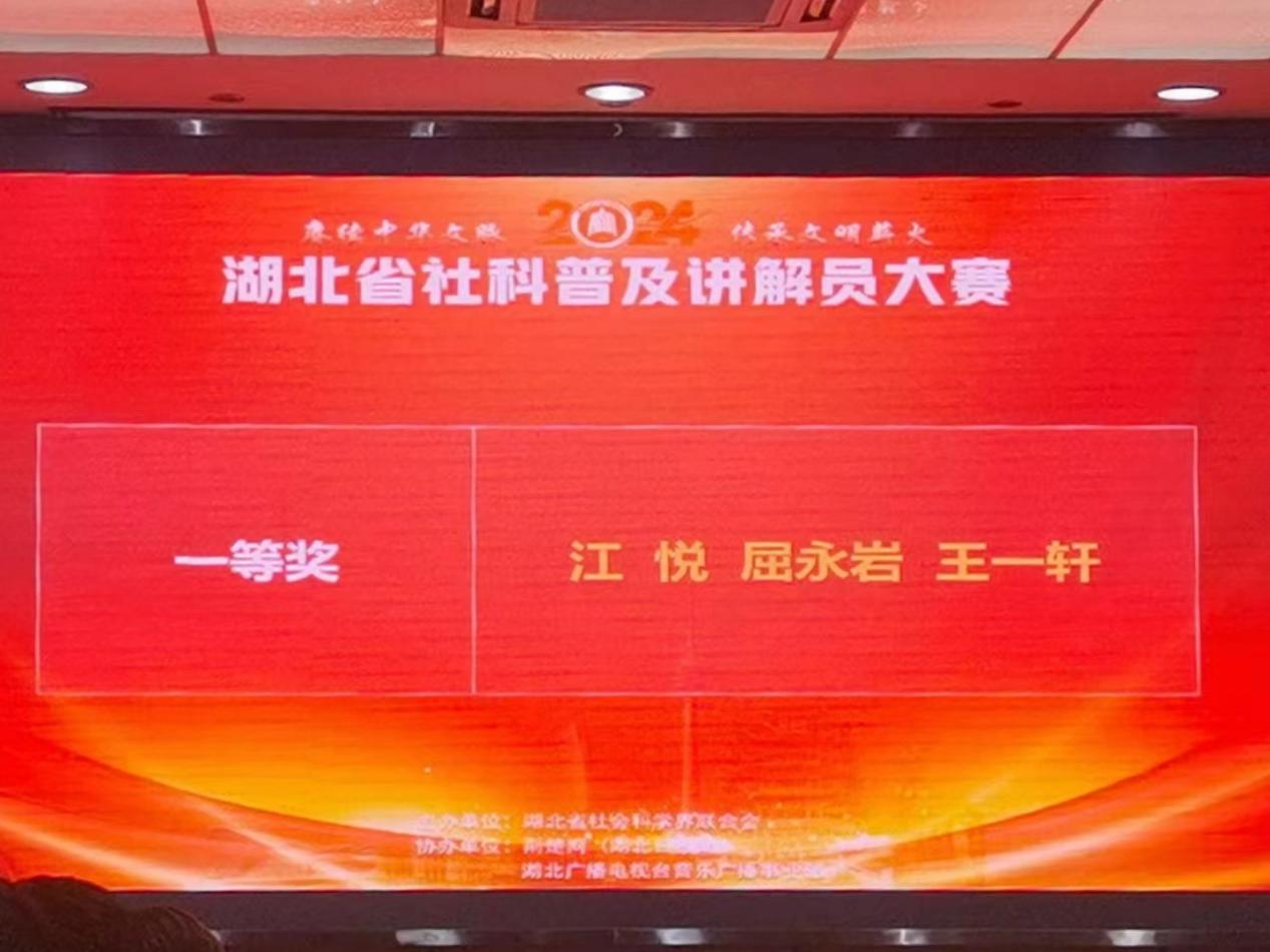 近日,湖北省第三届社科普及讲解员大赛决赛在武汉举行,公司屈永岩老师荣获大赛一等奖,并将代表湖北省参加第三届全国社科普及基地讲解员大赛。