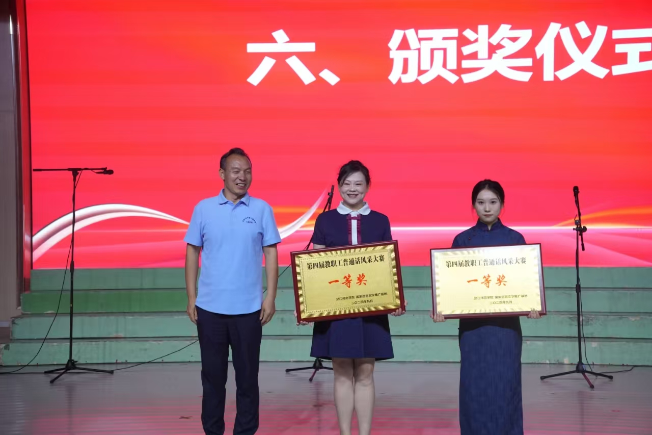 9月26日下午,由校语委、教务处主办,公司承办的“加大推普力度 筑牢强国语言基石”VSport体育官网入口第四届教职工普通话风采大赛在南风剧场圆满举行。来自全校各二级学院、机关、附属中小学共计19支代表队参赛,公司代表队朗诵的《觉醒年代》凭借精彩的表现,在众多参赛队伍中脱颖而出,荣获一等奖。本次大赛不仅展示了公司教师扎实的语言功底,更传递了对中华文化的深厚情感与时代担当。