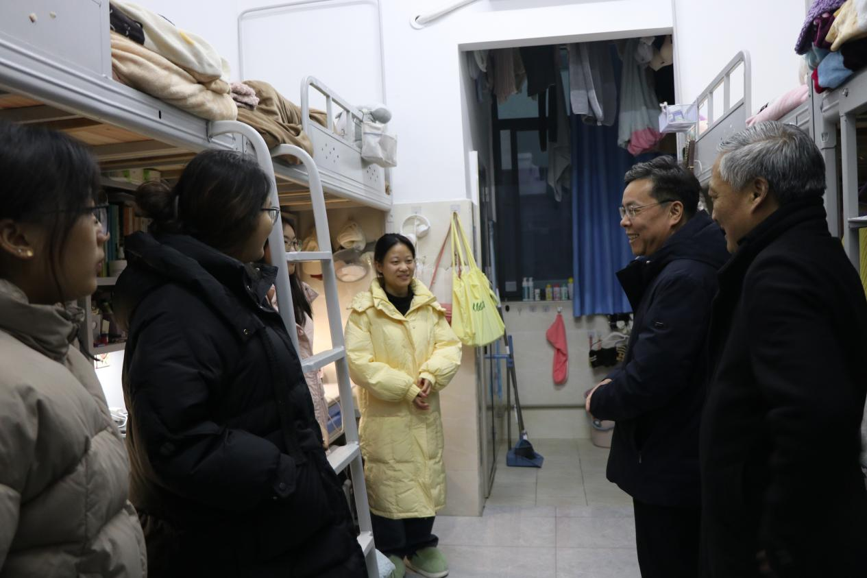 付永昌对同学们展现出的良好室风、学风表示肯定,并从安全教育、学风建设、文明宿舍建设三个方面提出期望。一是提高宿舍安全意识,遵守宿舍安全管理规定,尤其注意人身安全、财产安全、用电安全。二是合理规划时间,制定科学的学习计划,以饱满的精神状态和扎实的知识储备迎接期末考试。三是相互尊重、相互理解、相互支持,共同营造和谐温馨的宿舍氛围。