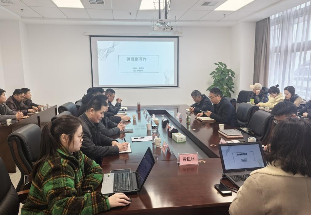 黄老师分别从微短剧的定义、微短剧的现状和发展趋势、优秀微短剧的表现特征以及微短剧的写作方法等方便进行了细致的讲述,在讲座中利用数据图表以及生动案例为大家展现了微短剧的写作内容。讲座同时还邀请了苏映影业的资深编剧娄会鑫老师为大家讲授微短剧的商业模式。会后,参会人员还进行了热烈讨论。通过此次培训,参会人员深入了解了微短剧创作的最新趋势与实用技巧,为后续项目的创新发展奠定了坚实基础。