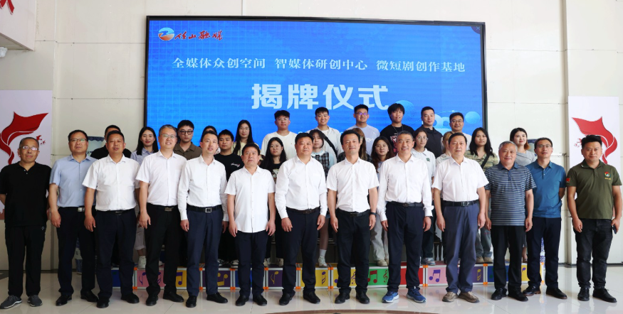 在竹山县融媒体中心,吴红斌、李金柱为“媒体众创空间、智媒体研创中心、微短剧创作基地”揭牌,VSport体育经理郝文华与县委宣传部副部长、县融媒体中心主任董武签订了《校县短视频、微短剧战略合作协议》。在与竹山县摄影协会、自媒体协会、网联会以及驻空间企业的交流中,了解学校毕业生工作情况,并征求用人单位对新闻类专业人才培养质量方面的要求。