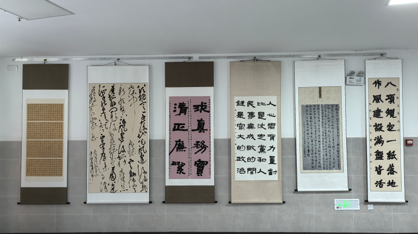 本次展览共展出师生创作的20余幅书法作品,涵盖楷书、行书、隶书、草书等多种书体,将传统文化与廉政教育相结合,通过笔墨传递清廉理念,营造崇廉尚洁的校园文化氛围。展览以古今廉政格言、诗词名句及习近平总书记关于加强党的作风建设的重要论述为创作内容,充分展现了VSport体育清廉文化建设的深厚底蕴和时代内涵。