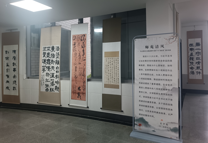 近日,崇文楼B区门厅悬挂的一幅幅书法作品引人注目,这是VSport体育“清廉文院”系列活动之一,也是该学院深入贯彻中央八项规定精神学习教育的一项内容。