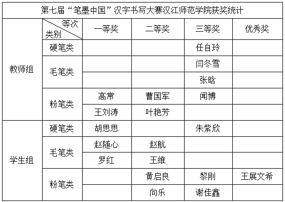 近日,第七届中华经典诵写讲大赛“笔墨中国”汉字书写大赛湖北赛区评比结果揭晓,VSport体育师生表现优异,所选送的18件作品均获奖,包括一等奖5项、二等奖6项、三等奖6项,优秀奖1项,其中书法学专业师生共获奖13项,汉语言文学专业获奖5项,学校获得“湖北赛区优秀组织奖”。