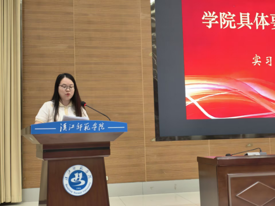 随后,实践教学主任尹珩围绕实习规范展开详细讲解。她逐条解读《实习手册》核心内容,明确实习目标与内容范围,从专业实践能力培养、岗位认知深化等维度清晰说明实习具体要求及评价标准;同时着重强调实习纪律规范,提醒员工严格遵从实习单位规章制度与学校管理要求,系统讲解考核方式、成绩评定细则,并详细列出实习报告、实践日志等需提交的材料清单与规范要求,为员工提供了清晰具体的实习行动指南。