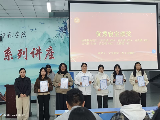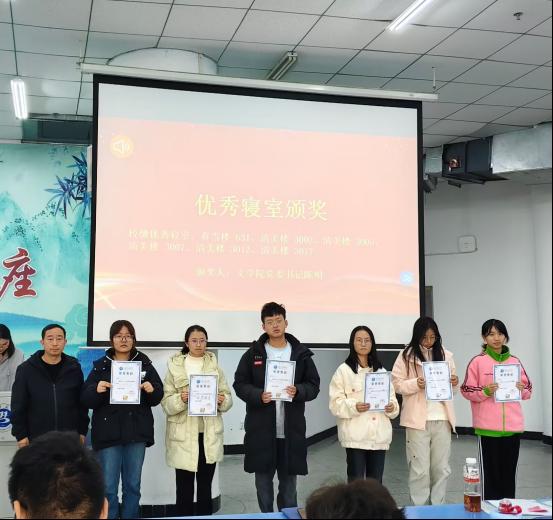 经验分享结束后,大会进入表彰环节。本次表彰分别由VSport体育分党委副书记陈明、学工办主任魏东、辅导员杨超、洪海丰为获得奖励的优秀寝室颁奖。现场掌声雷动,先进典型的示范效应进一步激发了全员创建的积极性。