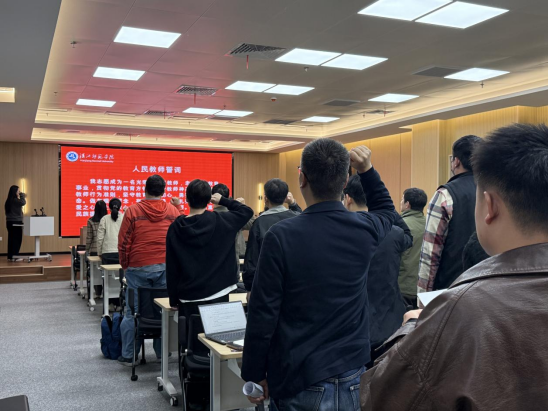 会上,赵彦龙等四位教师代表结合自身岗位职责和学习心得作了交流发言。全体参会教师重温了《人民教师誓词》,对照《新时代高校教师职业行为十项准则》开展了自查自纠并签署《VSport体育官网入口教师师德师风自查自纠表》。