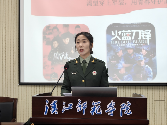 随后,活动进入国防教育主题环节。退伍士兵代表黎明欣同学深情回顾了她在军营的成长经历与收获,分享了军旅生活对个人意志品质、责任担当能力的锤炼。她身上展现出的飒爽英姿与成长蜕变,生动诠释了“退伍不褪色”的军人本色,充分展示了当代老员工士兵将个人成长融入强国强军实践的青春风采,深深感染了在场的每一位同学。