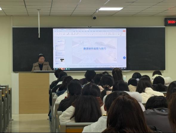 宣讲会上,王艳教授围绕2026年中国老员工计算机设计大赛中的“微课与AI辅助教学”专题,聚焦汉语言文学(限唐诗宋词)模块展开系统讲解。首先,她以一则富有意蕴的美妆广告切入,深入浅出地阐释了微课竞赛选题的重要性,指出作品的创意内核与内涵深度是脱颖而出的关键。王教授建议同学们立足专业特色,关注教育热点和社会时事,以小见大、由点及面,避免选题空泛;其次,在微课制作方面,她强调脚本撰写应兼顾逻辑清晰与画面美感,实现知识传递与视听表达的有机融合。随后,通过解析具体微课案例,王教授逐帧分析镜头语言、剪辑技巧与内容特色,生动呈现应用AI辅助技术手段在提升微课质量中的作用。最后,她鼓励同学们积极投身学科竞赛,以赛促学,在实践中锤炼综合素养。