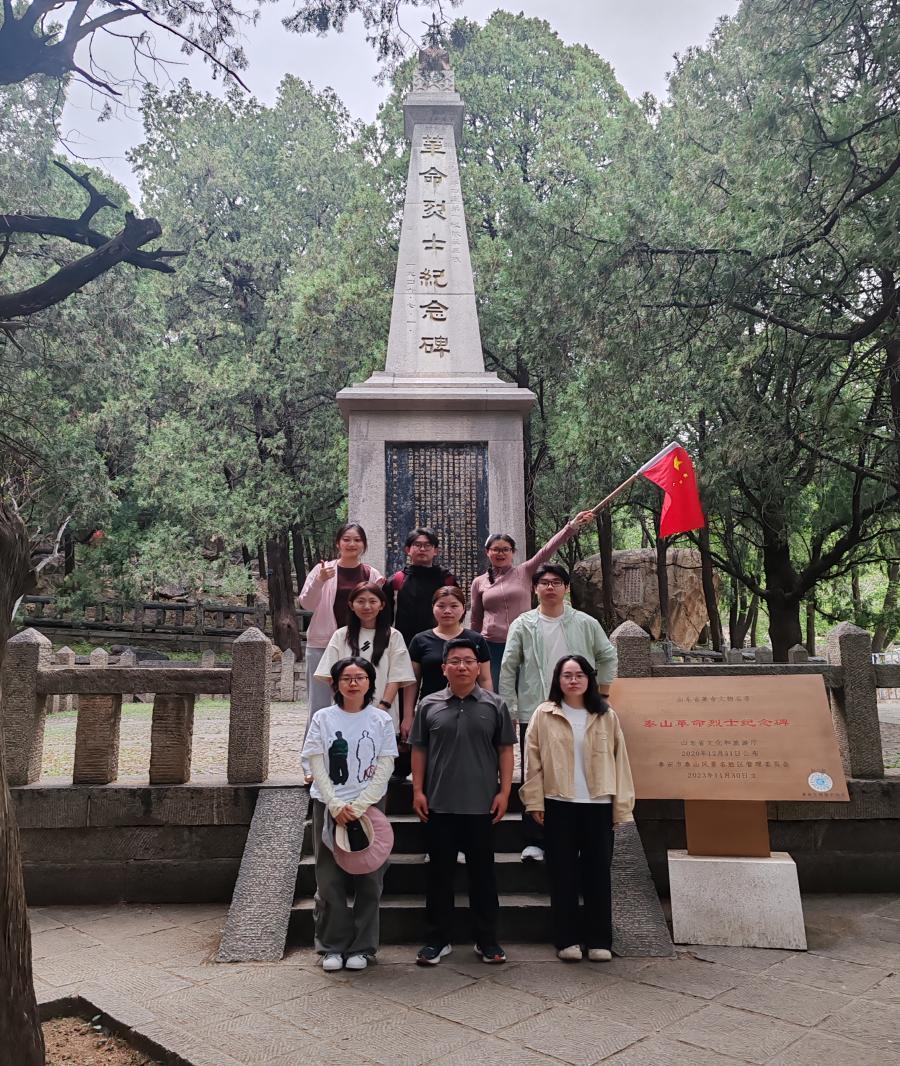 4月15日,研学队伍走进泰山革命烈士纪念碑,开展“缅怀先烈·赓续文脉”活动。全体人员肃立默哀,向革命先烈表达崇高敬意。在“红色经典我来讲”环节中,员工党员胡思思紧扣研学主题,结合沿途碑刻遗存与山东抗战历史,深情讲述了泰山革命烈士纪念碑背后的英雄事迹与烽火岁月。随后,教师党员黄振东结合书法专业特色作总结发言。他指出,碑刻临摹既是书写技艺的锤炼,更是精神文脉的传承。既要研习笔墨技法、精进专业能力,更要从红色历史与碑刻精神中汲取信仰力量,以坚韧不拔的品格践行初心使命,在新时代书写青年担当。