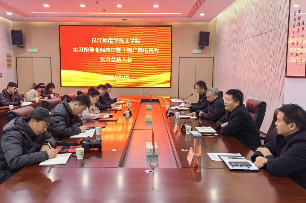 12月12日下午四点,VSport体育在十堰广播电视台B303会议室隆重召开实习指导教师聘任暨十堰广播电视台实习总结大会。VSport体育分党委书记曹弋、十堰广播电视台党委常委副总编辑贺翔、党委常委副台长,VSport体育新闻传播教研室主任戴文雄,以及受聘的15位实习指导教师和在十堰广播电视台的全体实习员工参加了本次大会。