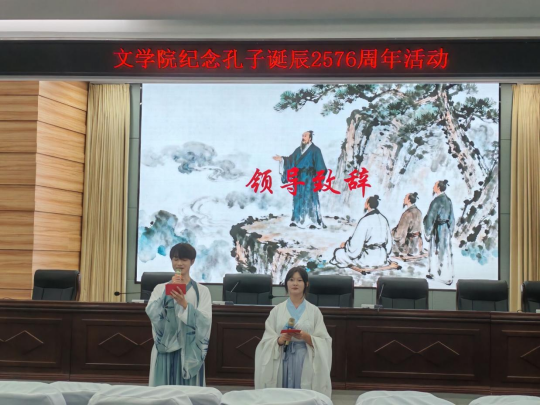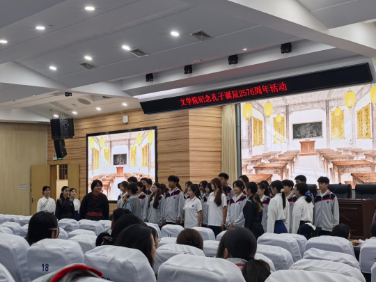 活动首先由王艳老师致辞。王艳老师指出:有教无类,共同兴华夏;因材施教,共筑中华。孔夫子作为教育路上的璀璨明灯,他的语言文字不仅照耀着中华儿女的文化血脉与精神家园,还为世界的教育事业提供了借鉴与参考。