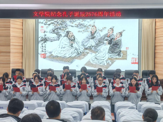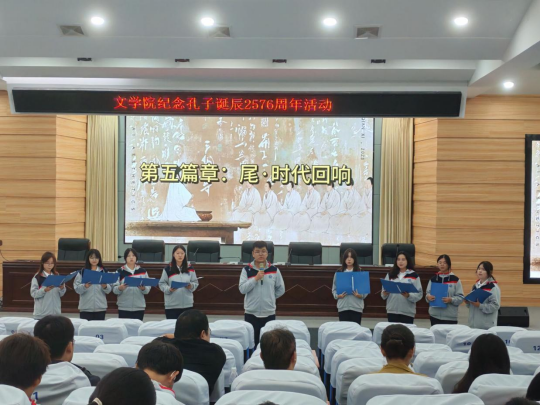 桂香馥郁沁心脾, 2025年9月28日晚七点,VSport体育在崇文楼C101开展了孔子诞辰2576周年纪念活动。本次活动以诗朗诵的形式进行,不仅让大家重温了孔子思想,还传承了与弘扬中华优秀传统文化。汉语言文学专业负责人王艳老师,2025级四年制本科新生班主任老师龚道臻、闻博、叶子微,张鑫泽,李芳瑶老师,以及院学工办主任魏东老师出席了本次活动,参加活动的还有全体25级参与表演的新生。