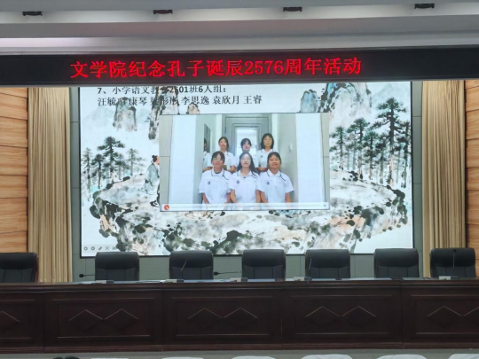 丹江口校区的学子们也参加到了这次活动当中,小学语文教育2501班的学子们虽然不能亲临现场,但是他们以视频录制的方式进行了诵读,把目光聚焦到屏幕上。用光影与圣贤对话。《万古长夜,仁礼之光》《论语十二章》《与孔子相约》《论语八则》这些经典,让屏幕上的仁与和,在青春学子中显现出蓬勃生机。
