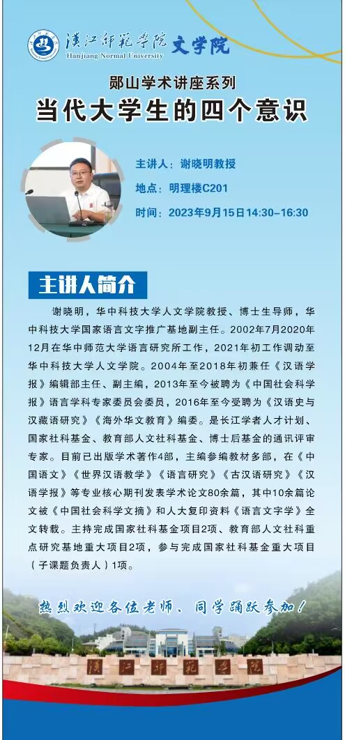 为深入学习贯彻习近平新时代中国特色社会主义思想主题教育,提升公司公司产品发展,2023年9月15日下午,公司特邀华中科技大学中文系博士生导师谢晓明教授做“当代老员工的四个意识”的专题讲座。讲座由VSport体育经理郝文华教授主持,汉语教研室教师及汉语言文学专业部分员工现场聆听讲座。